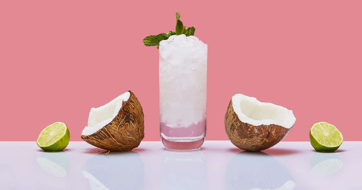 Add ice rum and soda. Pour in the coconut water and rum. Top off glass with.